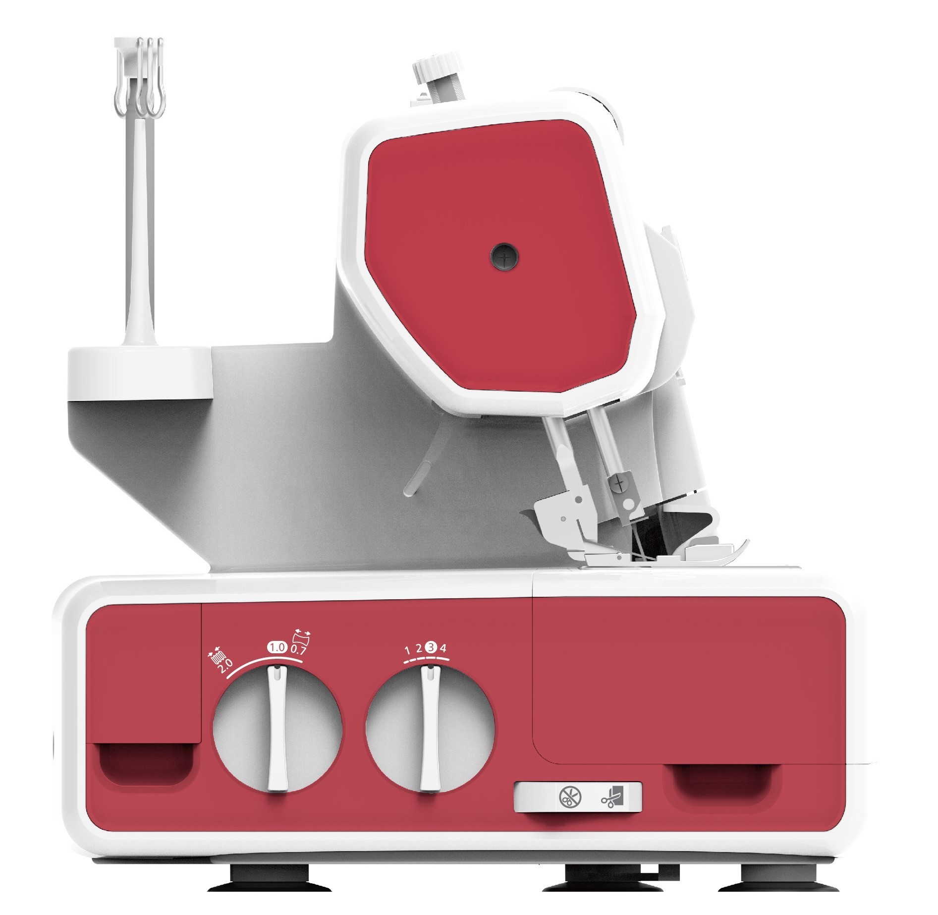 This Silver 721D overlocker machine is a lightweight machine and easy to thread. This 3 or 4 thread machine has a built-in tension adjusting device, as well as a detachable extension plate for free arm sewing. It has a variable stitch width of between 2.3 and 7.00mm, with an automatic safety switch which is activated when the looper cover is opened. Colour-coded thread paths and a self-threading lower looper for quick threading. All you need to do is lay the thread into the guide, press the lower switch and the lower looper will be threaded.