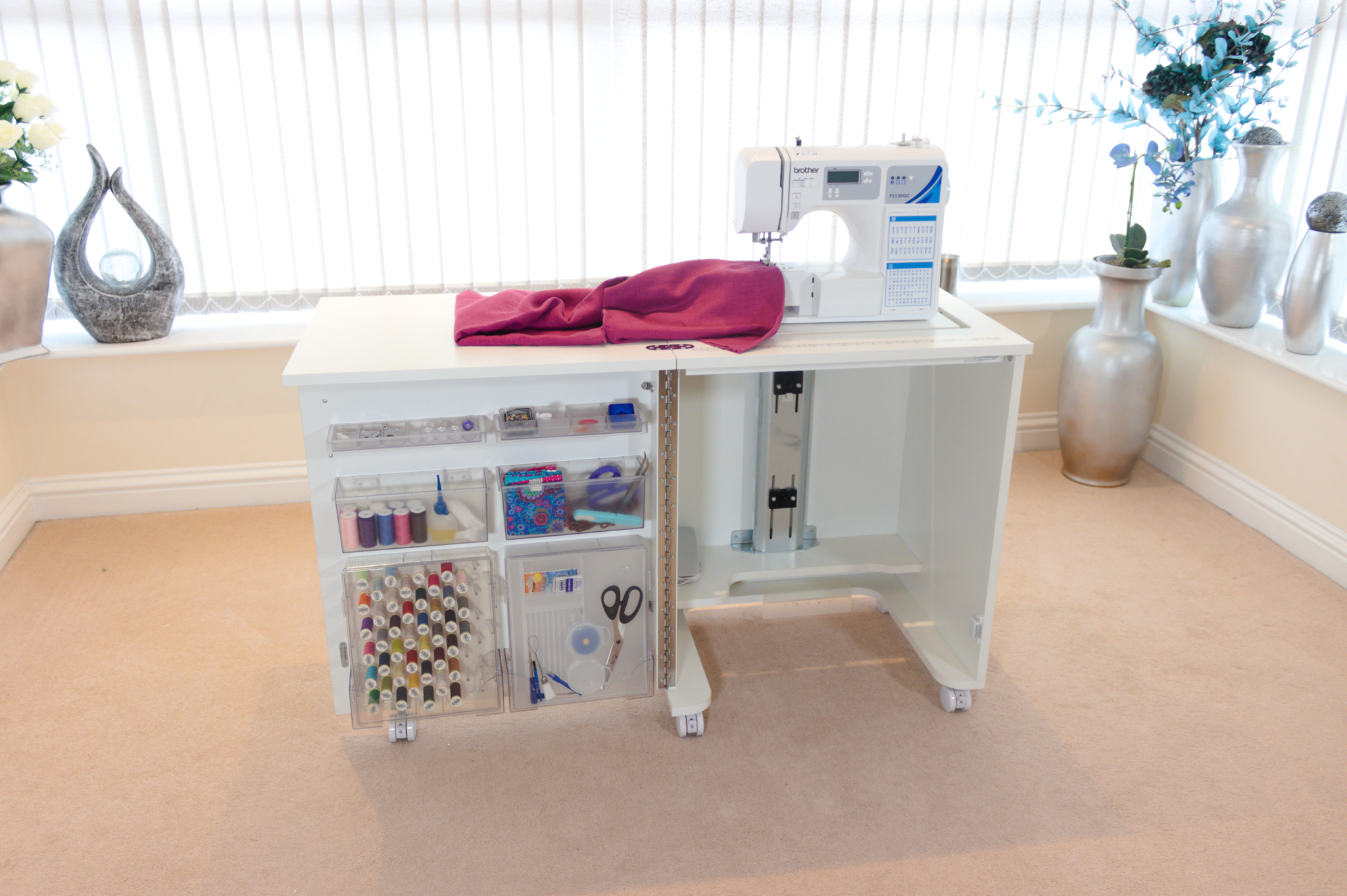 Now fitted with our new flush inset style template (type 1972). This cabinet has our standard size opening which is capable of taking many types of standard, smaller or older sewing machines on the market but not all of them, more particularly the larger domestic sewing machines. For any queries about whether your machine will fit please contact us and we’ll respond as quickly as possible.