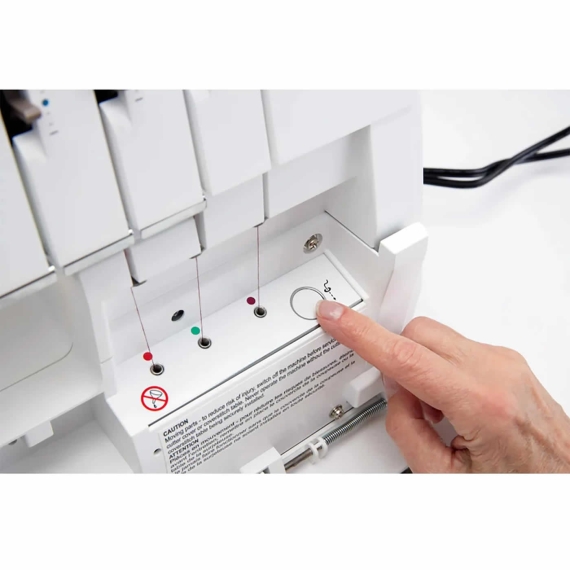 With the HUSQVARNA® VIKING® AMBER™ Air S | 500 Coverlock Machine one-touch electronic air-threading feature, you can effortlessly thread the machine loopers with the simple push of a button.