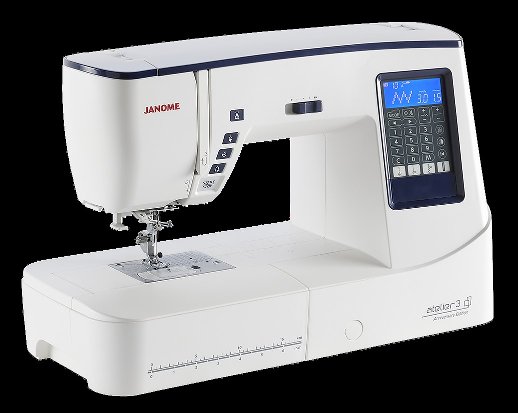This model is the entry point in the Atelier Anniversary Edition Series. This model has been designed for every type of sewing – general sewing projects, home décor, fashion, patchwork & quilting. It has 210mm (8.2”) wide arm space to the right of the needle with a height of 120mm (4.7”), giving you plenty of space for those larger projects. With a great range of 120 stitches, including a choice of 7 styles of buttonholes, plus an alphabet. Just flip open the machines’ top cover to view the huge variety of 7mm wide stitch styles available. The stitch quality is excellent at speeds of up to 820 stitches per minute, pivot on corners with the needle up/down feature, use the maximum sewing speed for precision work and to help you gain confidence. Thread the needle with built-in threader, trim off threads with the built-in automatic thread cutter scissors button … everything you need to make your sewing easier and more enjoyable.